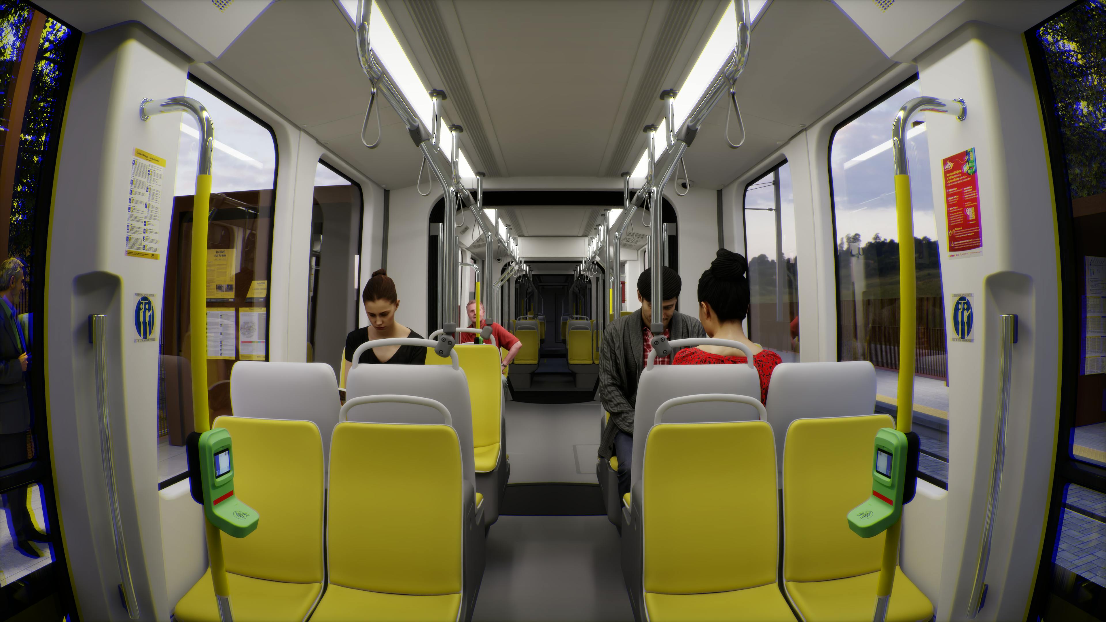 Su ogni mezzo sono previsti 66 posti a sedere, di cui 64 fissi e 2 pieghevoli (ribaltabili) in corrispondenza degli spazi riservati alle sedie a rotelle. I sedili sono resistenti agli atti vandalici e realizzati in un materiale antiscivolo.